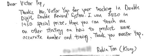 Result Sports Toto 10 November 2010 Winining Testimonials Robin Tan 10 November 10